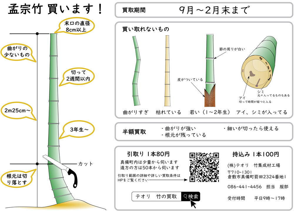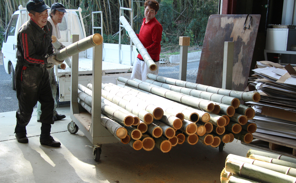 引き取りご希望の方は、まず竹集成材工場までお電話ください。