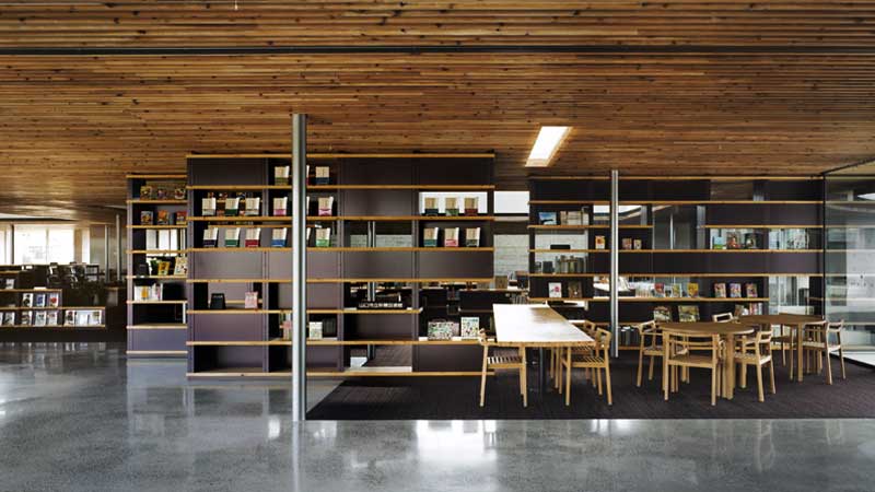 山口県の図書館の書架・閲覧テーブル・椅子を生産しました。
