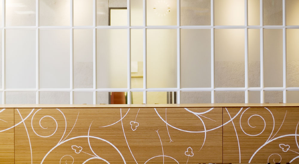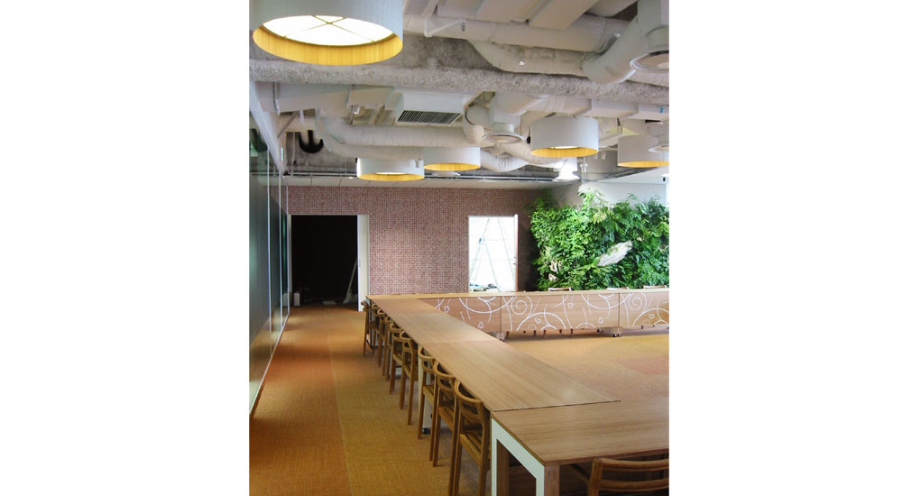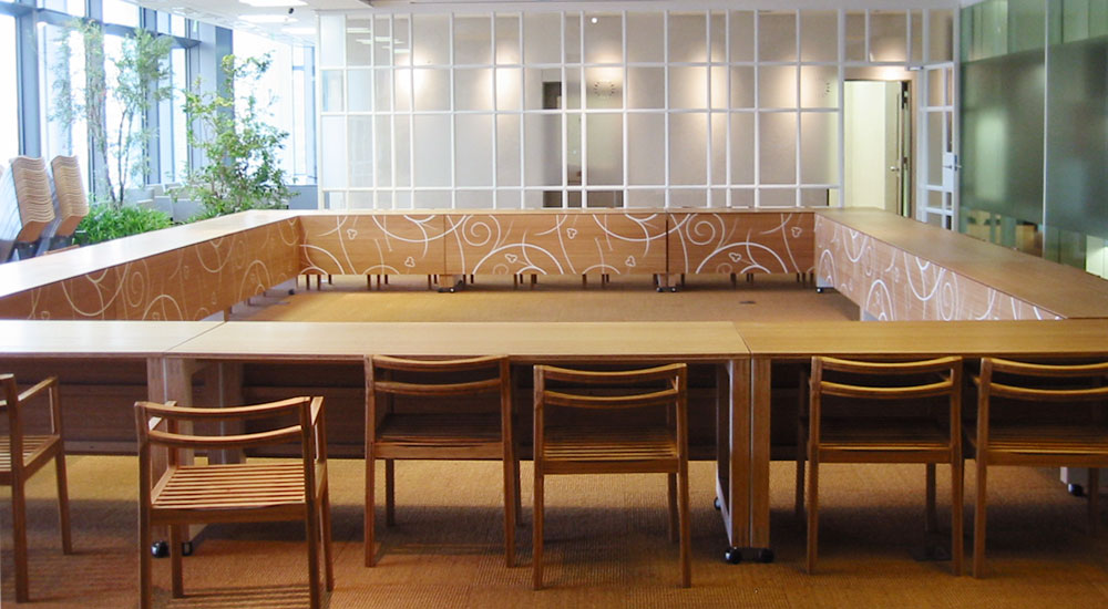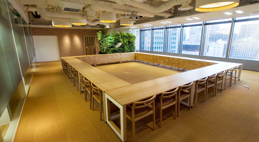 自然光と、植物と、自然素材(竹)でナチュラルな会議室をデザインされています。