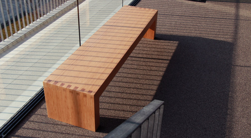 竹集成材と杉材の積層材とメラミンソリッド色の衝立がナチュラルさとモダンさを両立させています。