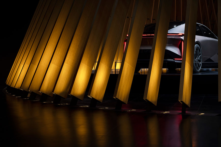 日本を代表するラグジュアリーカーブランドであるLEXUS様のJAPAN MOBILITY SHOW2023のブースにおいて竹ルーバーを製作いたしました。