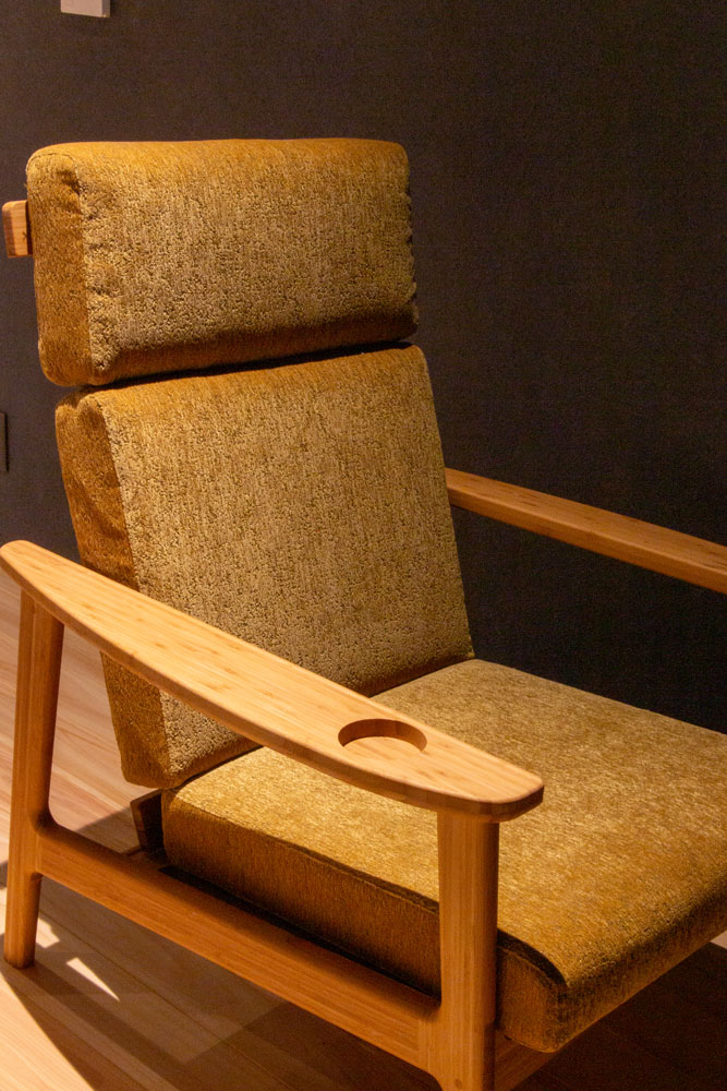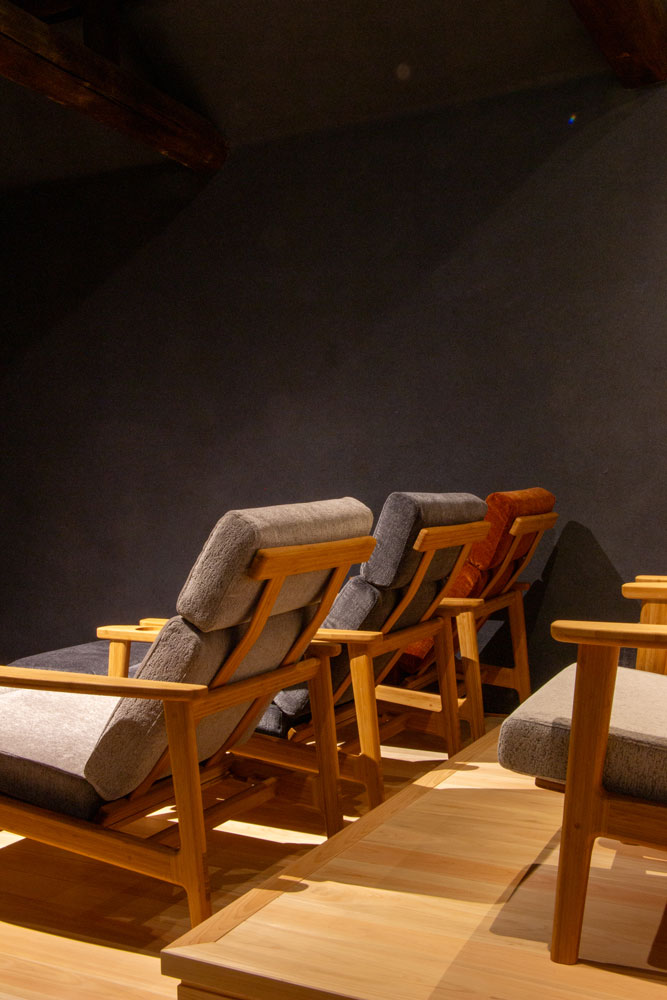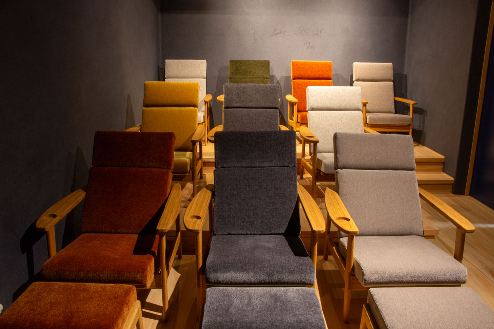 倉敷を舞台にした平松恵美子監督の作品「蔵のある街」を上映するために作られました。ゆったりと映画を楽しんで頂きたいと、Cソファリクライニングを採用頂きました。