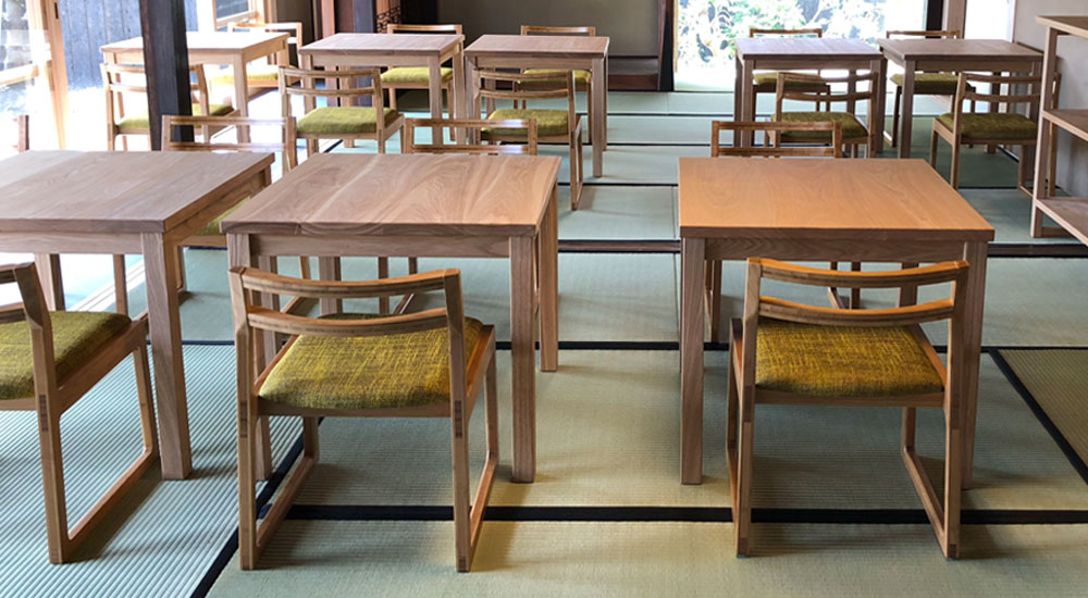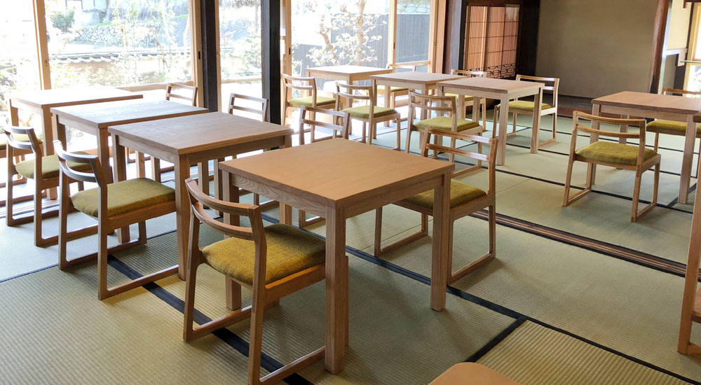 古民家を再生したカフェ《Mikawa Terrace》さんに和室チェアを採用頂きました。