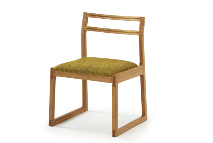 畳の空間での椅子席には畳ズリの着いた和室チェアが機能的にも、意匠的にもよく合います。座面のファブリックのオリーブグリーンは、和の空間に合いながら、洋のデザインにもフィットする、汎用性の高い張り地です。