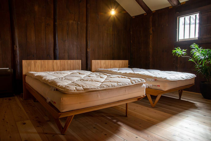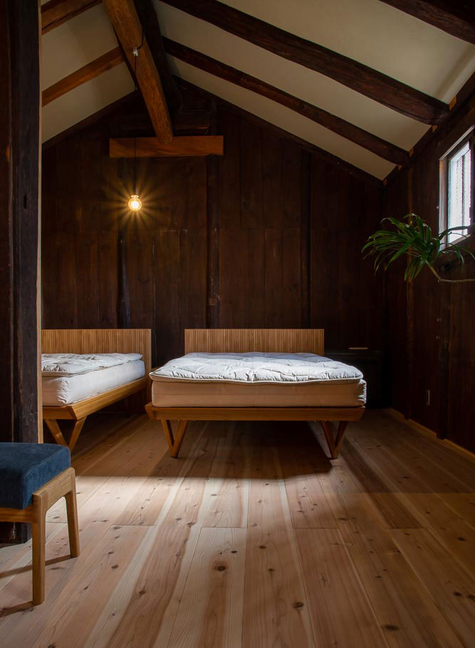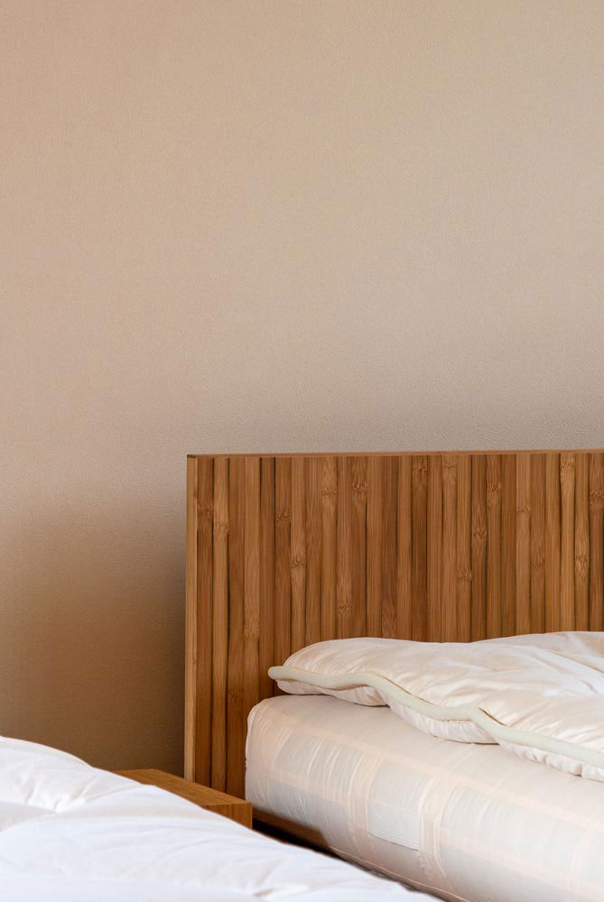 ヘッドボードには竹の皮目の表情を
