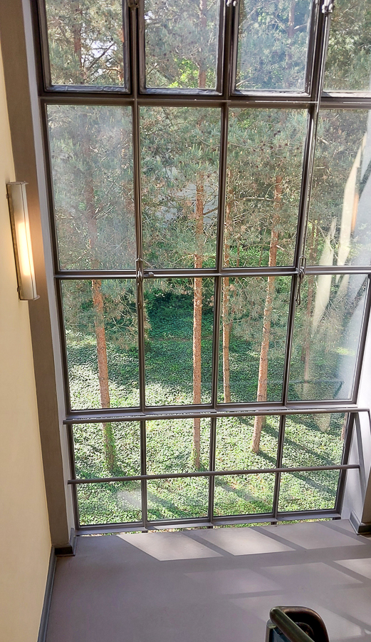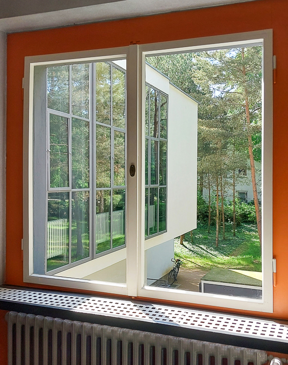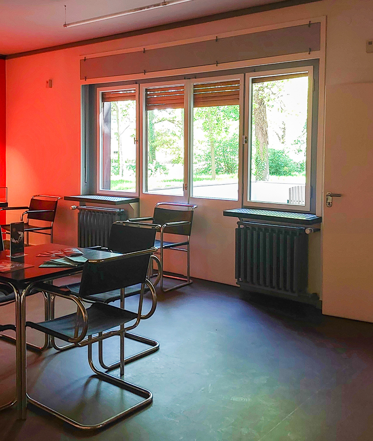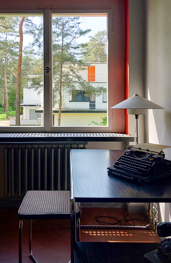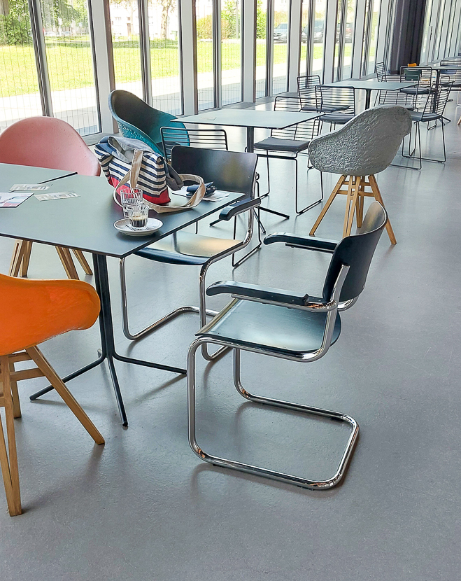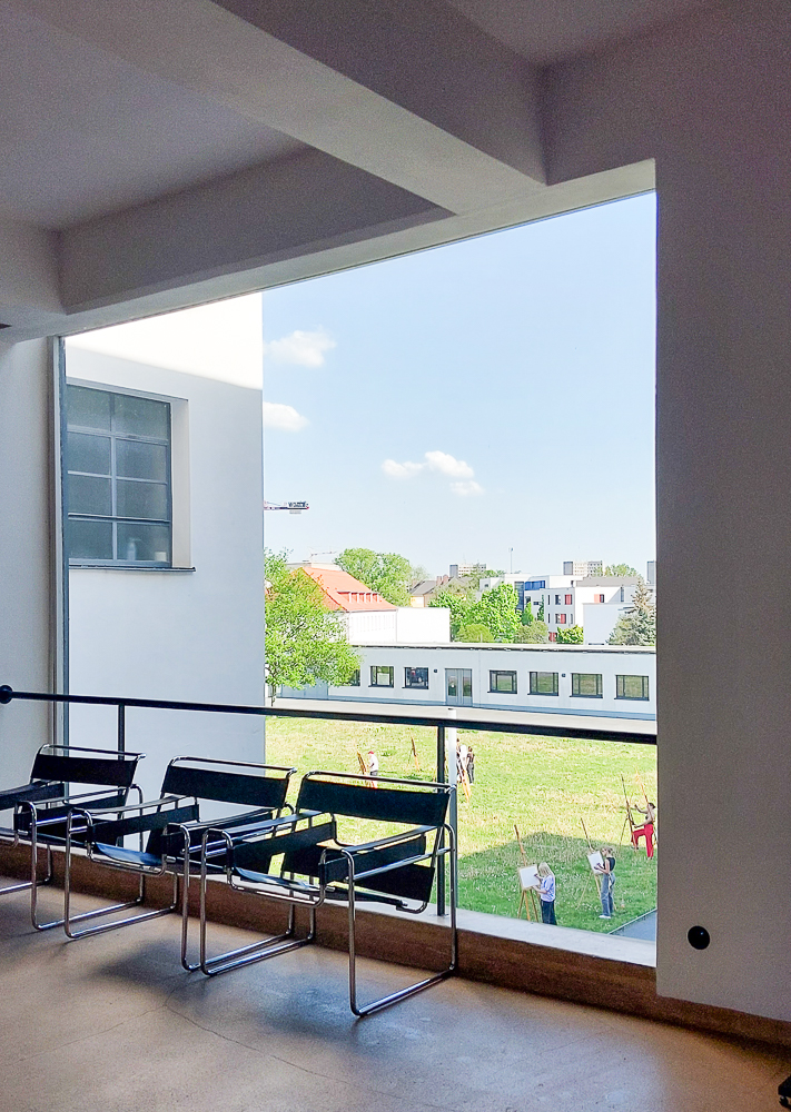 | Impression | 一般的にバウハウスは「合理性」「機能主義」がクローズアップされがちである事、また当時の記録写真が比較的古いモノが多いため、ともすると同校のデザインからやや無機質な印象を受けるかもしれません。 実際には、外部環境を取り込んだり、採光やカラーリングによる光の表情の変化を付けるなど、自然の共存を大切にする空間づくりをしています。また家具もスチールパイプを主材としながらも、弾力性に優れ座り心地よい製品になっています。 テオリの社名の由来はドイツ語の「Theorie=セオリー=基本・原点」にありますが、自然の持つ心地よさ大切にしながら合理性のあるモダンデザインの系譜の中にテオリも存在する事が改めて確認できる機会でした。 次回のジャーナルは、テオリの代表的な椅子「テンション」のデザインについてデザイナーである岡山県立大学の三原鉄平教授インタビューです。10月の掲載をお楽しみに。