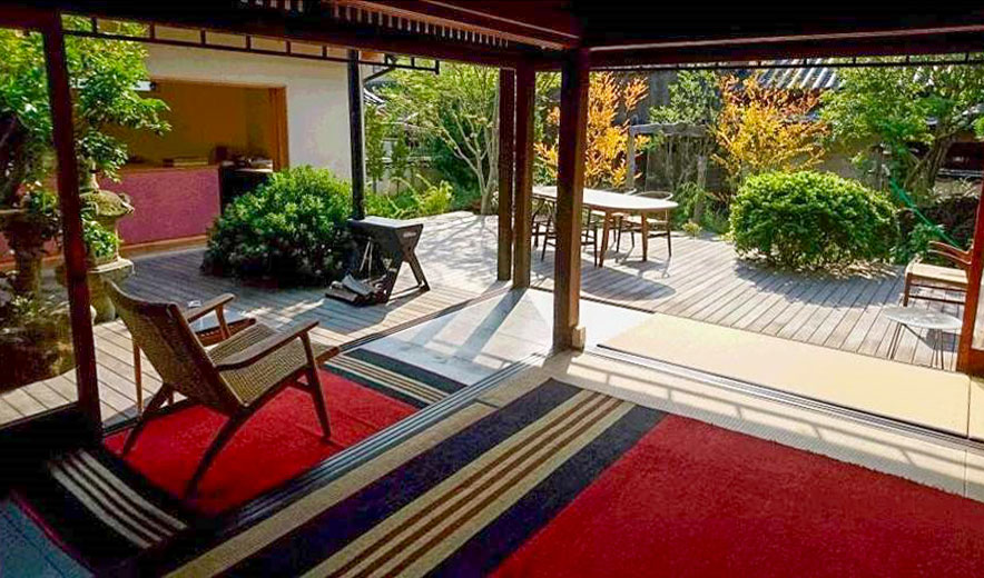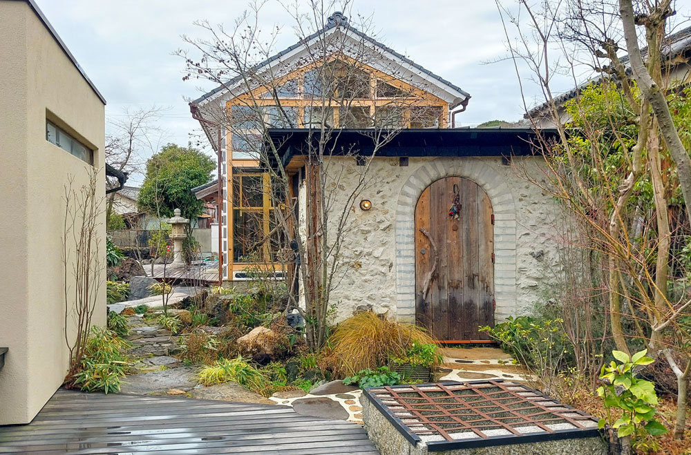 「水と緑」の旧原田邸は10年目を迎え、木々も成長して深々とした緑陰をつくり、どこにいても酒津の天然水が流れる音が聞こえてきます。今では敷地内に4つの井戸が掘られ、水に親しむビオトープに始まり、水を楽しむ露天の水風呂やフィンランド式のサウナ小屋、母家の二階と藏は宿泊可能で水を沸かして檜風呂で入浴が楽しめます。さらに母家と蔵の屋根に水を散水して、夏の室温上昇を抑えることに活用しています。旧原田邸は、私たちの仕事場でありながら、酒津サウナ、宿泊、記念日の食事会、勉強会&ケータリング等、一般の方が「地域の宝」を楽しめる場として共有しています。