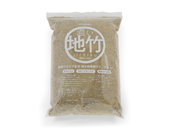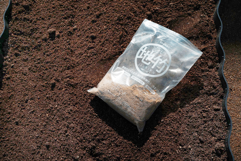 竹を無駄なく活用するために、テオリでは竹集成材製造の副産物である細い竹の幹や枝葉から、天然土壌改良剤〈地竹〉を製造しています。