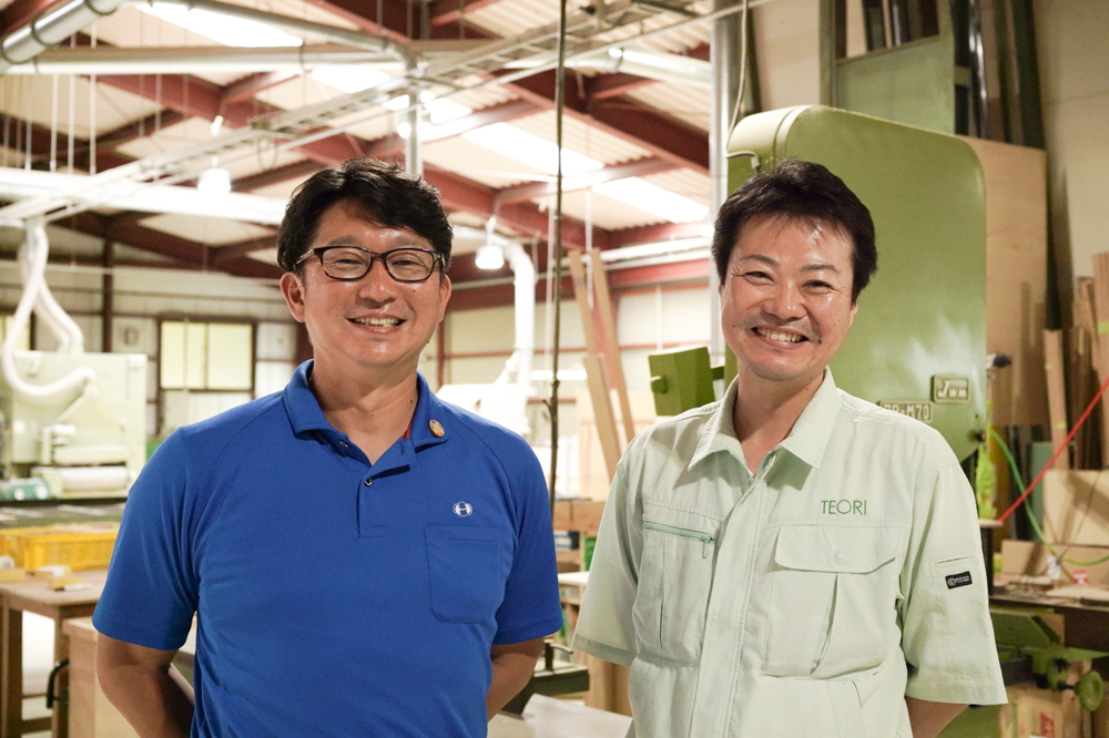 2021年7月、創業以来株式会社テオリの代表を務めていた中山正明が退任し、中山和幸が代表取締役に就任しました。テオリ二代目社長のひととなりを、同じ真備町で木工業を営む株式会社ホリグチの代表取締役、堀口真伍さんにお伺いしました。
