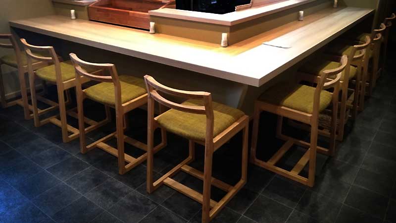 倉敷市の料理屋《福よし》に和室チェアのハイタイプ、