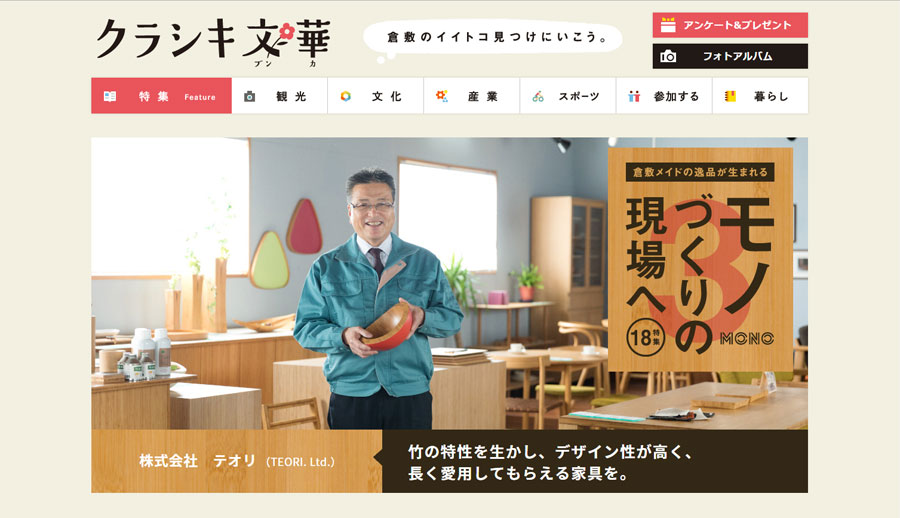 倉敷の良いところを紹介するWEBページ「クラシキ文華」に