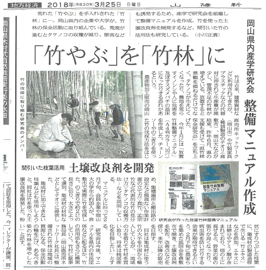 3月25日(日)の山陽新聞に弊社も参加する竹林保全活動を掲載頂きました。