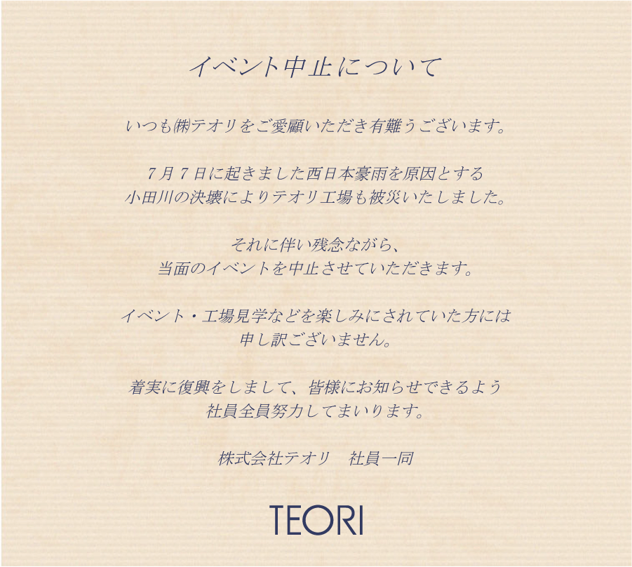 西日本豪雨に伴う小田川の決壊によってテオリ工場も浸水被害を受けました。