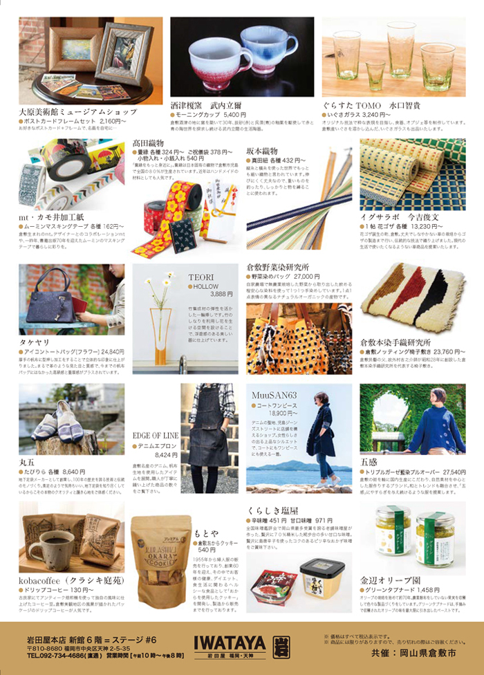 | 福岡天神・岩田屋「倉敷アーツ&ファブリカ展」にお越しください。 |