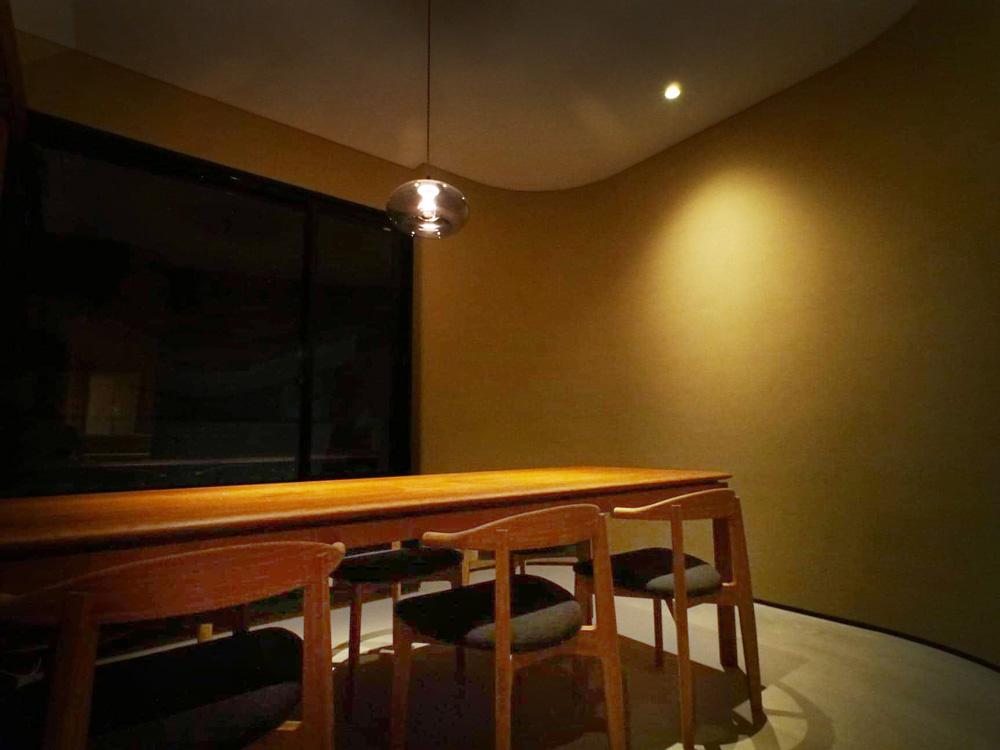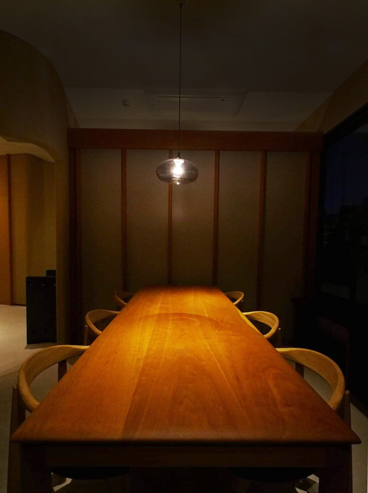 ゆったりと座れるFダイニングチェアが落ち着いた店内によく合っています。