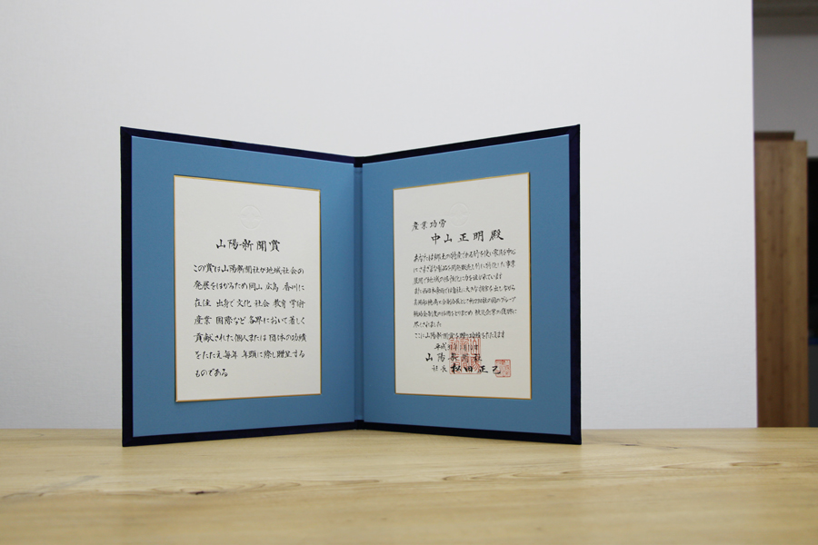 弊社代表・中山正明が山陽新聞賞「産業功労」部門を頂きました。