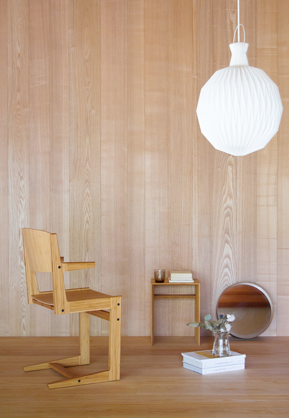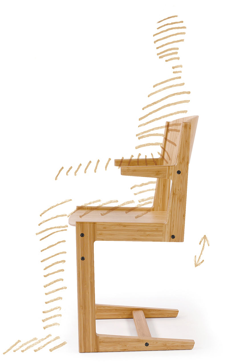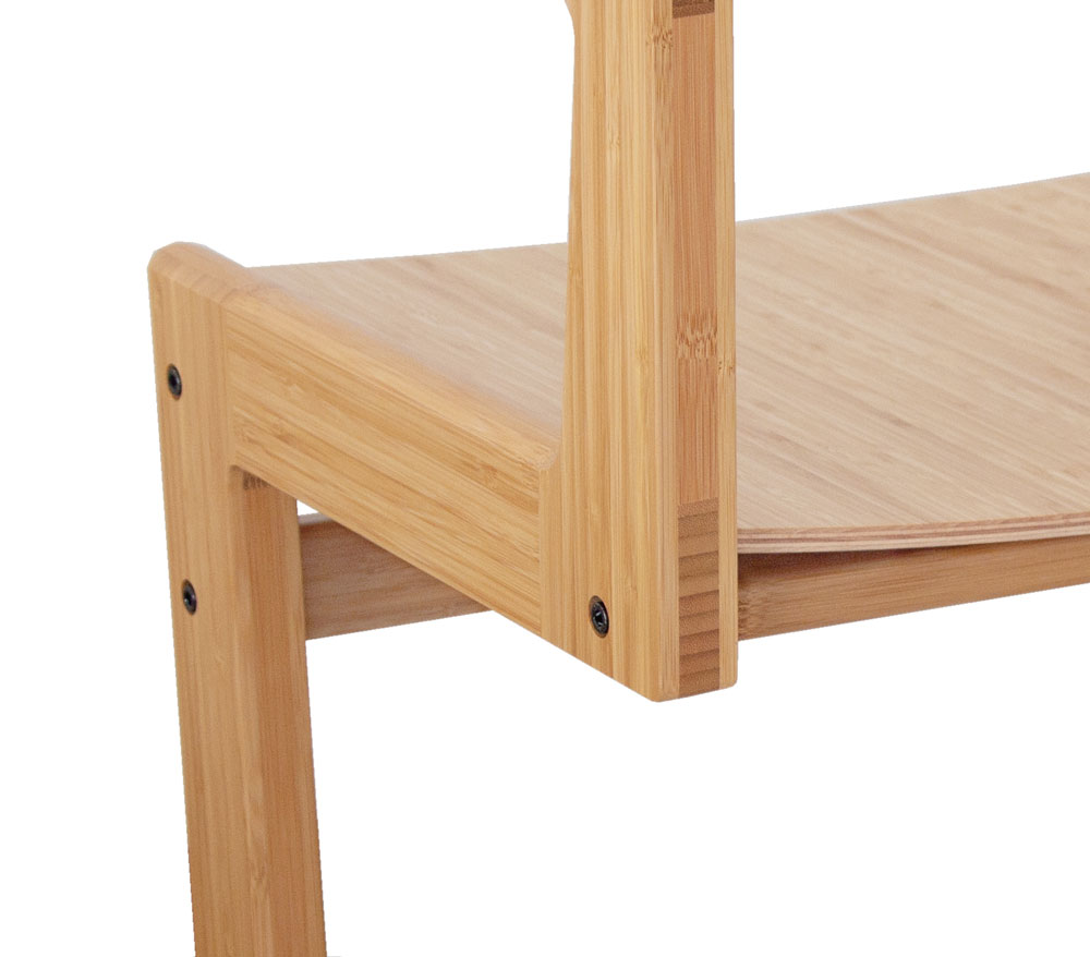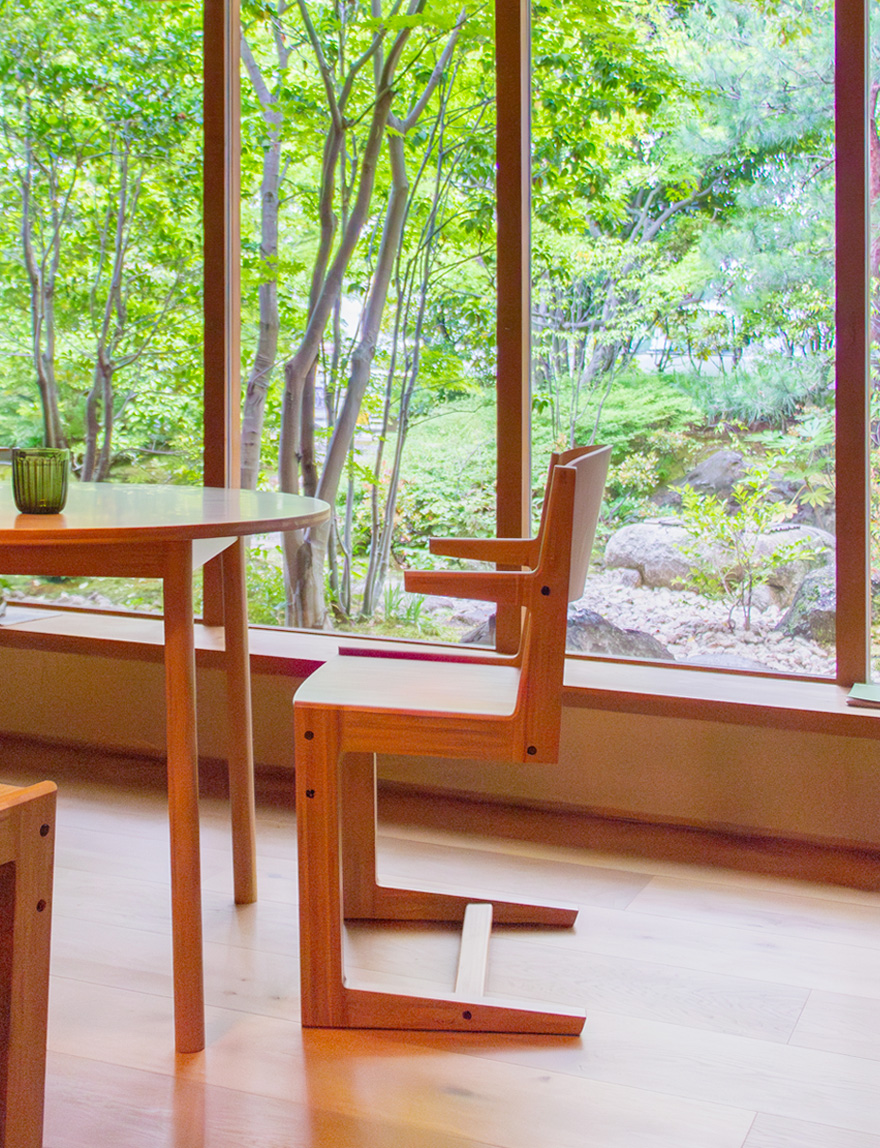 実用新案登録のテオリ独自の工法「クロスレイヤージョイント」により、木質系チェアでありながらカンチレバー構造に対して十分な強度を持っています。