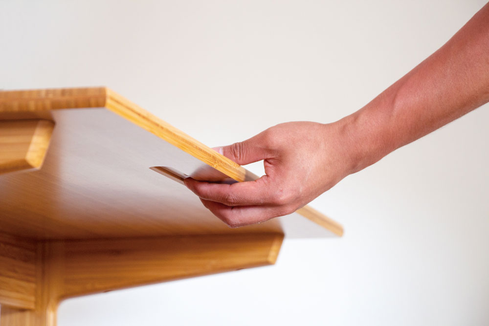 天板裏の手掛かりと、足裏の傷防止材により移動が簡単です。 |