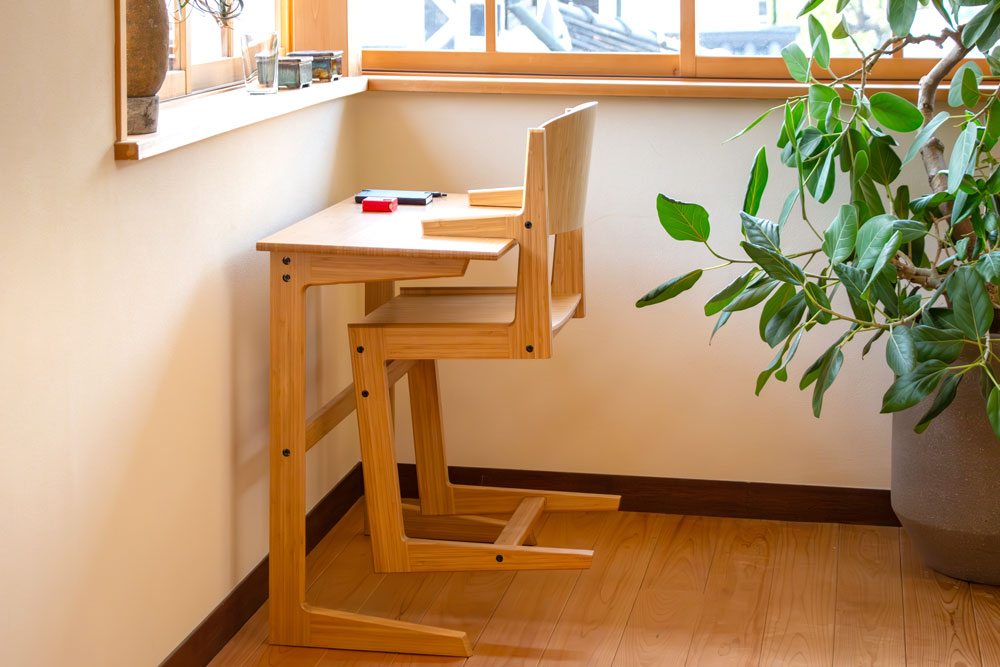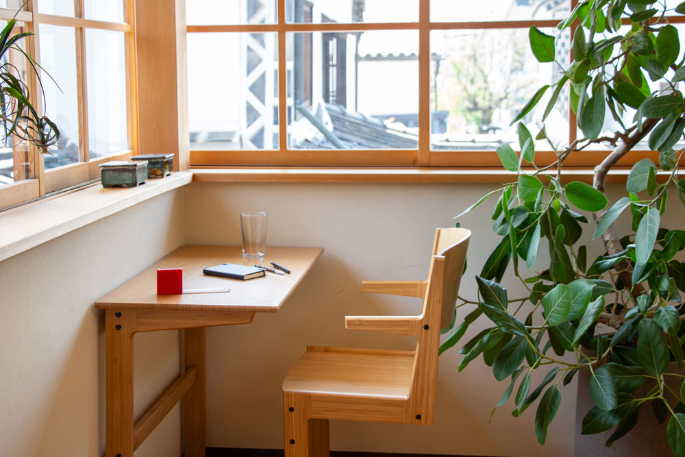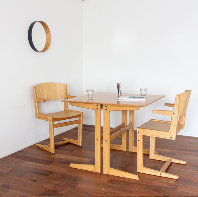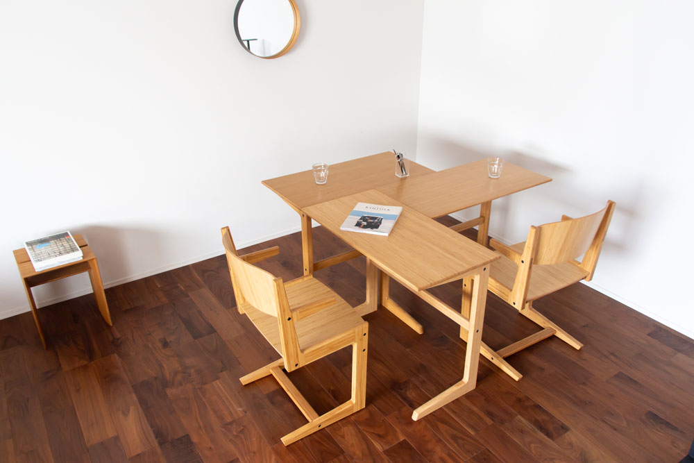 出入りのしやすい脚の形状で、椅子を軽く引いただけで立ち座りができます。