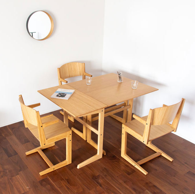 | ダイニングテーブルと同じ巾なので、来客用の追加テーブとして利用できます。 |