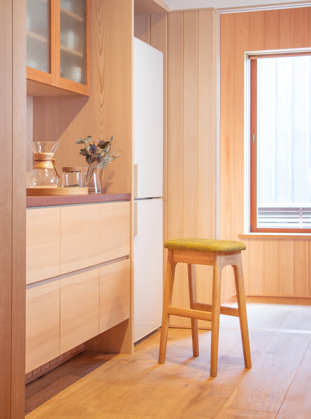 キッチンやカウンターに最適なハイスツールです。 奥行261mmのコンパクトさで場所を取りません。 座面も軽く腰を掛けるのに十分なサイズです。
