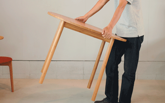 薄い天板と、足だけのシンプルな構成なので非常に軽量で、移動が簡単です。