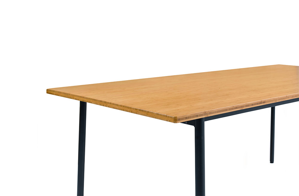 細身のブラックのスチール脚と、竹の天板の組み合わせが、コンテンポラリーな印象のテーブルです。少しハの字に傾けた脚で安定感のある構造と見た目になっています。