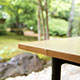 | 竹の天板と、スチール脚のコンビネーションが現代のインテリアにフィットします。 |