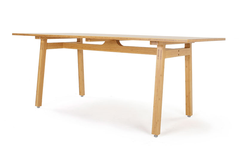 竹の強度を活かした薄い天板と、構造が特徴のダイニングテーブルです。
