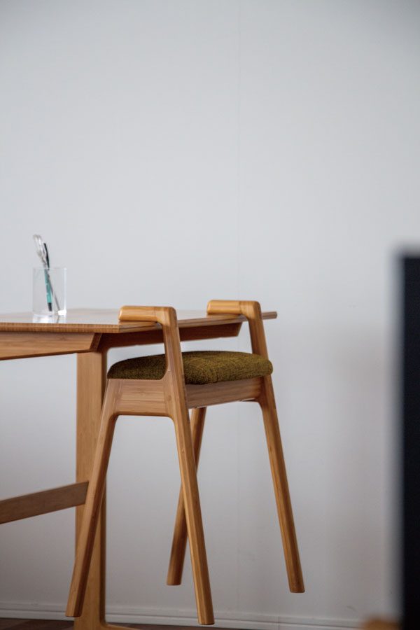 リノリウムのタイプは、耐久性に優れサイドテーブルや玄関での荷物台としても活躍。