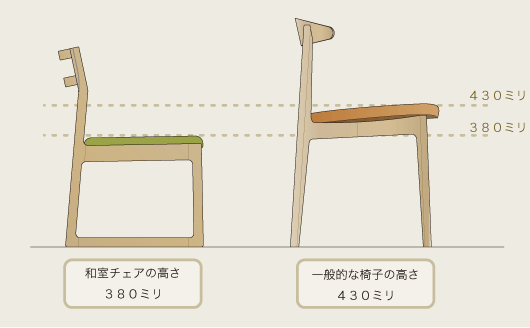 和室チェアは座面高さ380mmで和室でも落ち着く見た目と座り心地です。