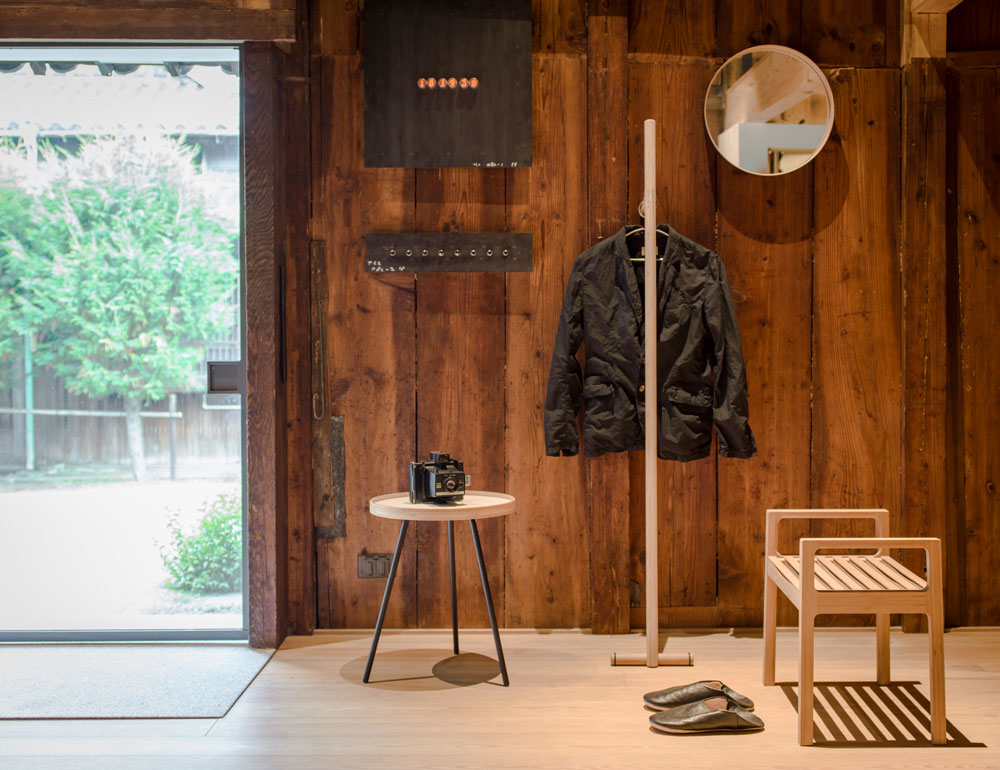 | エントランスで物置台として |