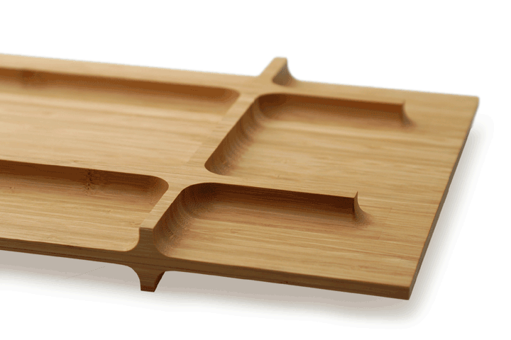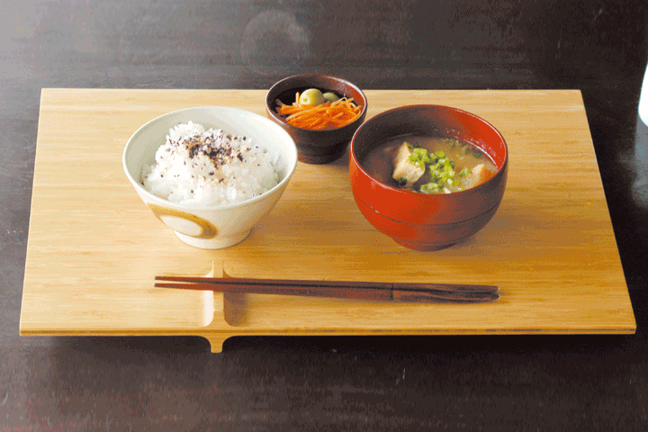 箸置きを一体化したトレイです。板が少し浮いて見えるフォルムにすることで、