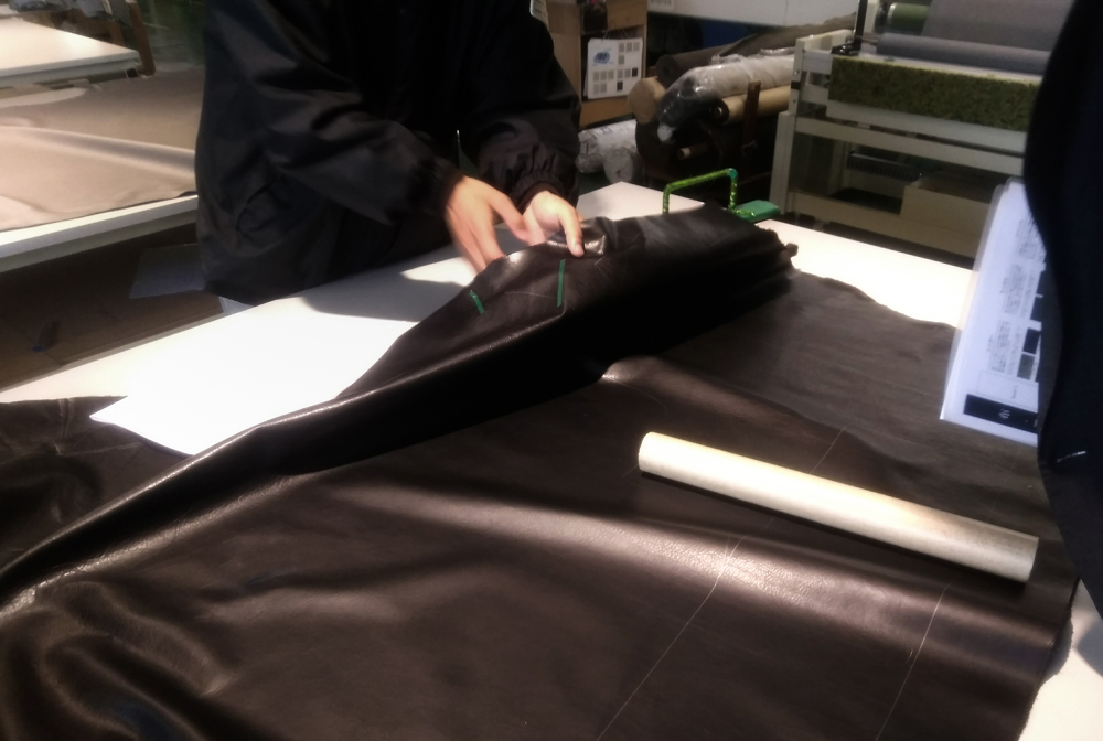 革クッションは専門工場で、革の特性を引き出しながら