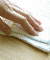 普段の軽い汚れはぬれたふきんで軽くふき取った後、乾いたふきんでさっと水分をふき取ってください。食べ物など汚れがひどい場合は薄めた中性洗剤をふきんに染み込ませ強くこすってください。汚れを落とした後の水分はふき取ってください。